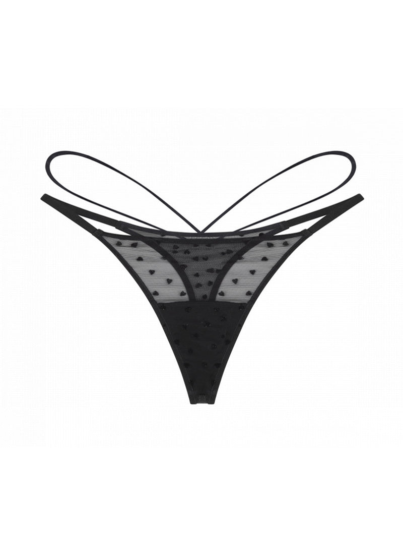 Underwire bra in black stretch material, with small, embroidered heart pattern with 3D effect and glitters. Closure at the back and with fully adjustable straps.