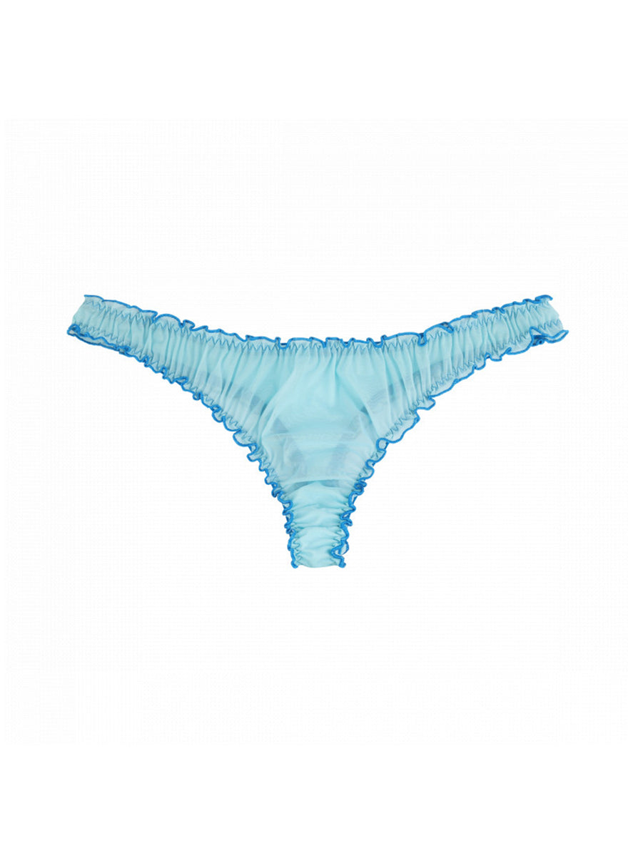 Mid-rise briefs in blue, stretchy, and sustainable material, with dark blue stitching and details. With straps at the waistband.